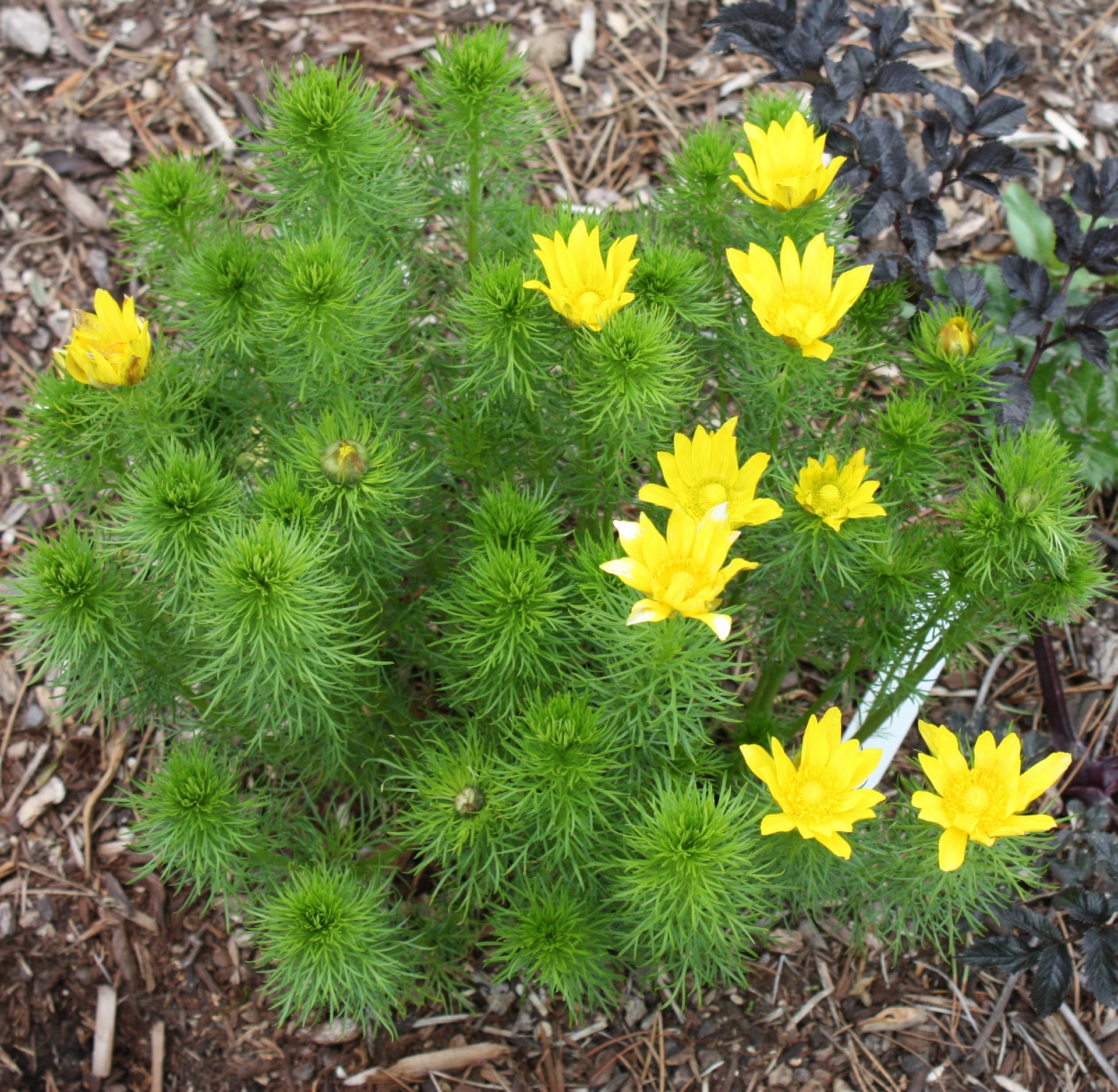 A extremely rare species hailing from Eurasia in various pockets, from Spain all the way to Western Siberia, including Switzerland (Valais). This hardy perennial emerges in April, unfurling very fine fern-like leaves with buds on top, opening to 2-3” bright yellow flowers May into June.