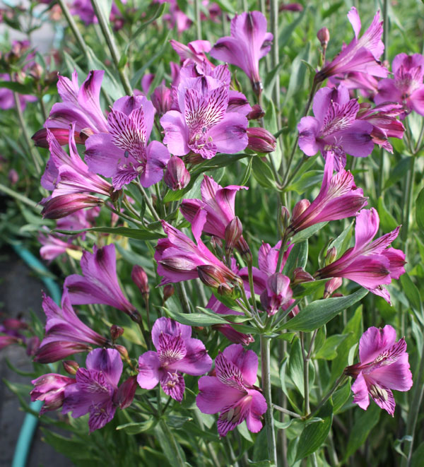 For over 10 years, this was the most outstanding selection we offered in the purple color range and - it's still up there. The flowers are medium-large (2.5"), dark lavender with a white zone but no yellow, which intensifies the purple experience. However, 'Azula' is not easy in the garden and although technically hardy to at least zone 8, we recommend it for zone 9 or to be grown in a greenhouse. It positively needs excellent soil and even moisture (but not wet). BEFORE ORDERING, PLEASE read very important information about growing and shipping Alstroemerias on top of the Alstroemeria main page.