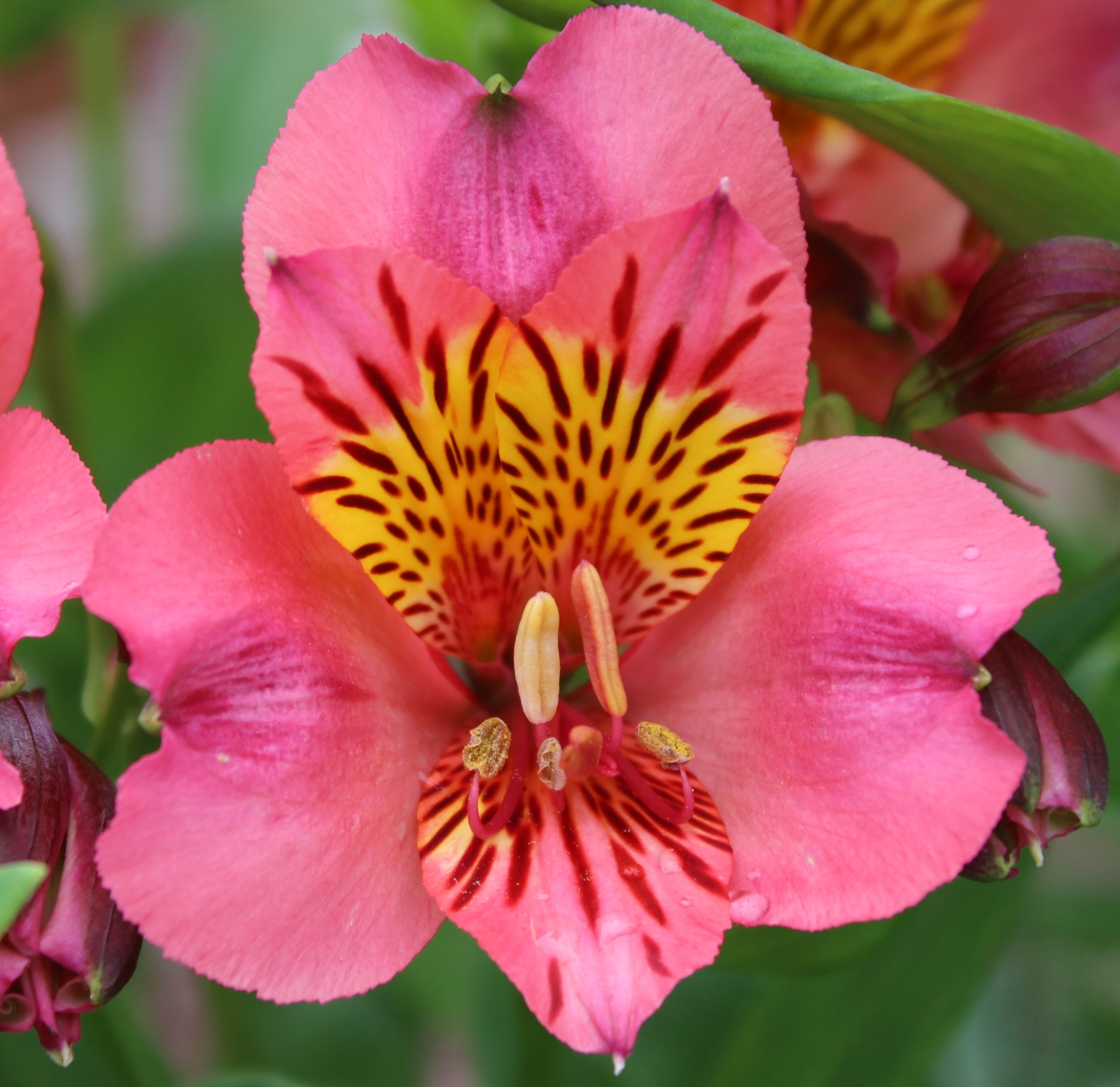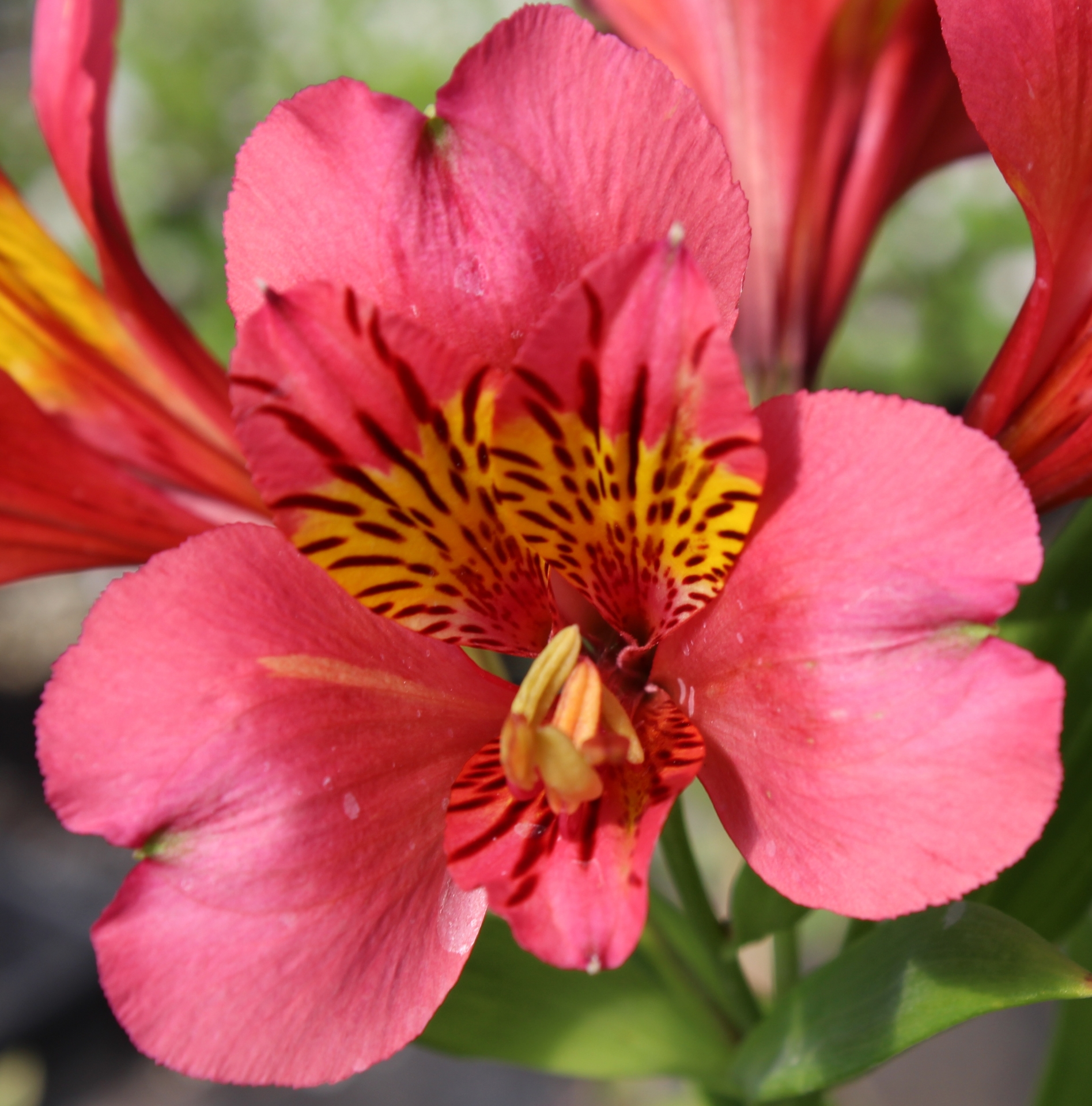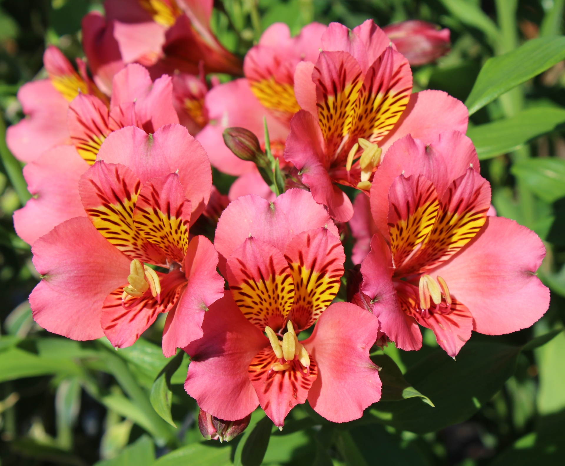 Large bright pink flowers with yellow throat. The best solid pink in the salmon spectrum of the bunch, producing first class cut flowers. This is one of 24 we acquired from England in 2016 that have taken the heat and the cold (teens) here in Oregon. BEFORE ORDERING, PLEASE read very important information about growing and shipping Alstroemerias on top of the Alstroemeria main page.