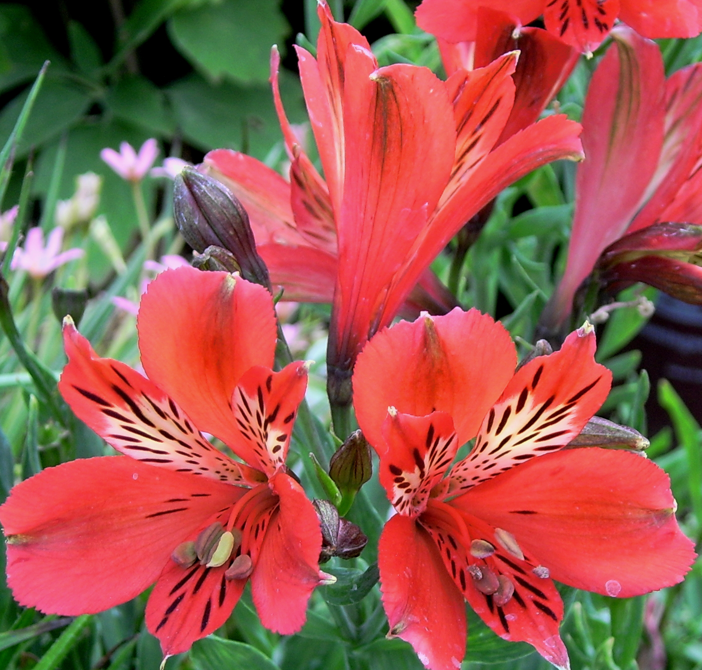 I personally would call that deep strawberry (with cream) but you be the judge and it doesn't really matter what you call it. Actually, this is my favorite Alstroemeria; red is a rare color among perennials and this one is a very pleasing one at that, easily to combined with other perennials without clashing. BEFORE ORDERING, PLEASE read very important information about growing and shipping Alstroemerias on top of the Alstroemeria main page.