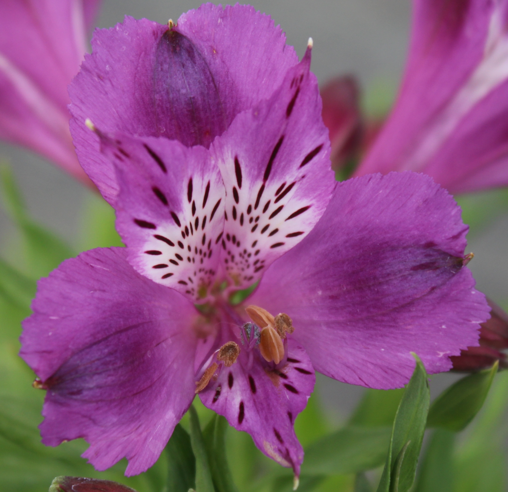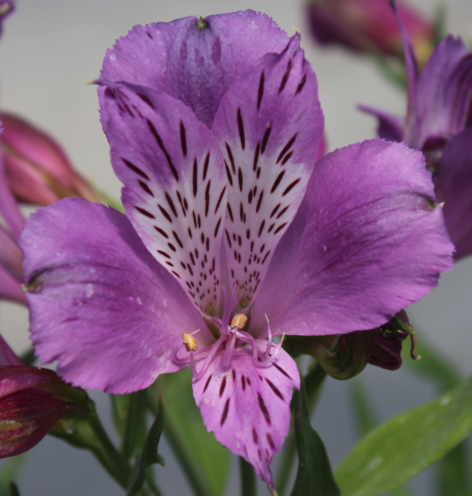 In our opinion the best of the bunch, as far as lavender/purple is concerned. The flower size is about the same as 'Azula' (2 1/4 - 2 1/2") and the coloring is very close - deep lavender with a white zone and the obligatory dashes, albeit a fewer. But this ones is MUCH easier to grow, like most other Alstroes. BEFORE ORDERING, PLEASE read very important information about growing and shipping Alstroemerias on top of the Alstroemeria main page.