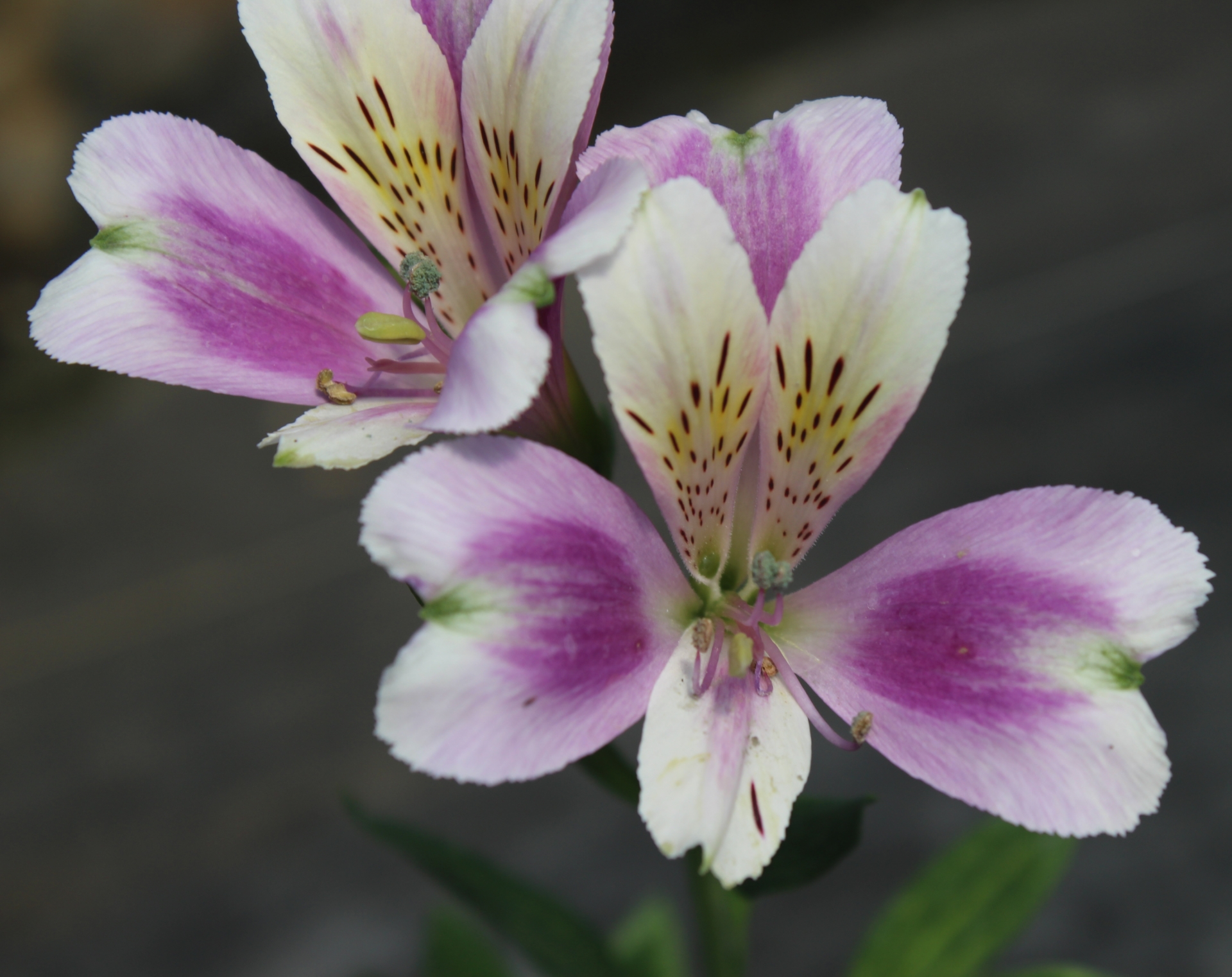 Medium sized flowers (2 - 2 1/4"); lavender with dark eyes on the outer petals, the 2 upper inner petals are soft lemon, lighting up the flowers. Overall a "cute" appearance and marked as such internally as the working name. BEFORE ORDERING, PLEASE read very important information about growing and shipping Alstroemerias on top of the Alstroemeria main page.