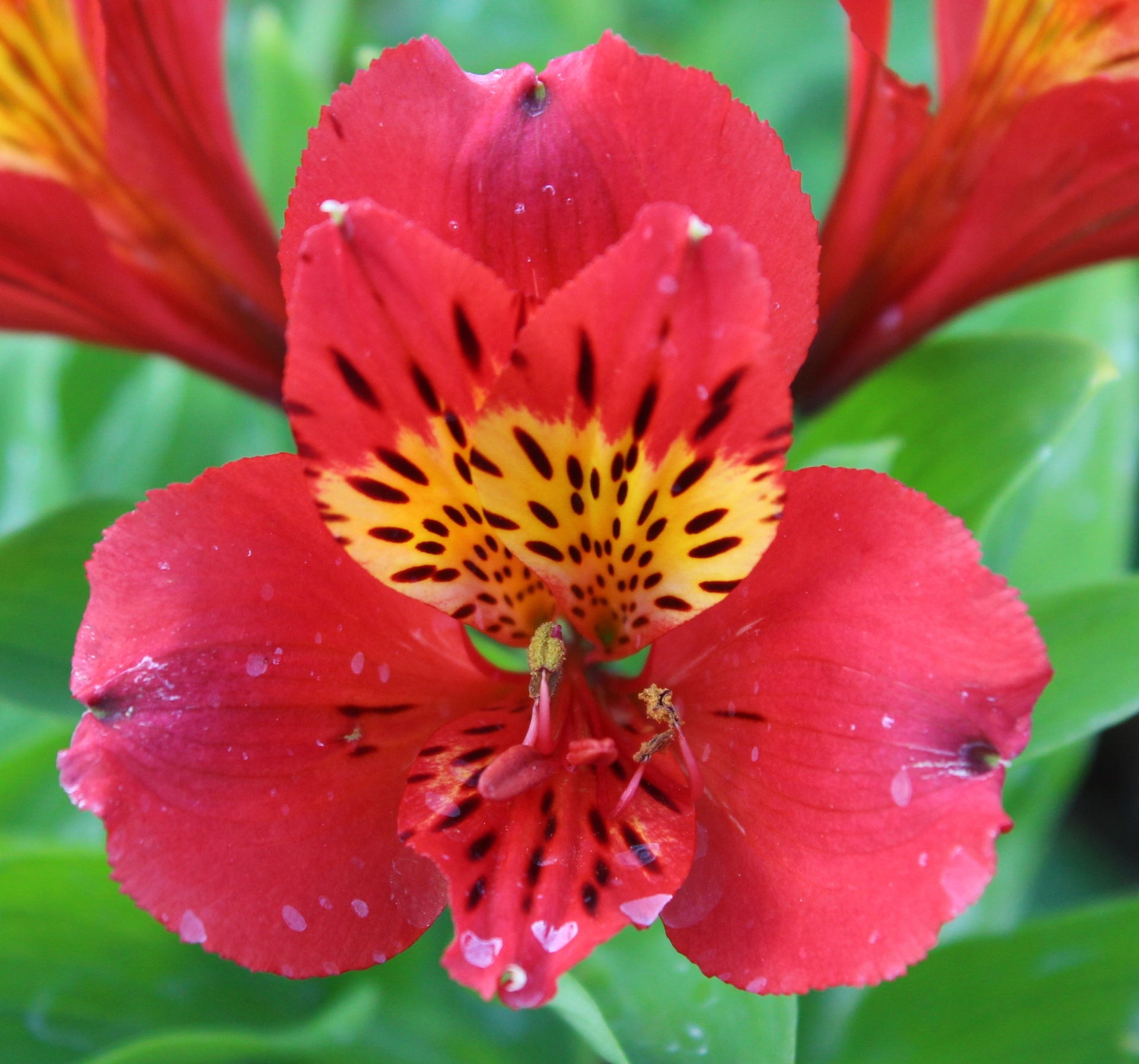 Large dark red flowers with yellow zone