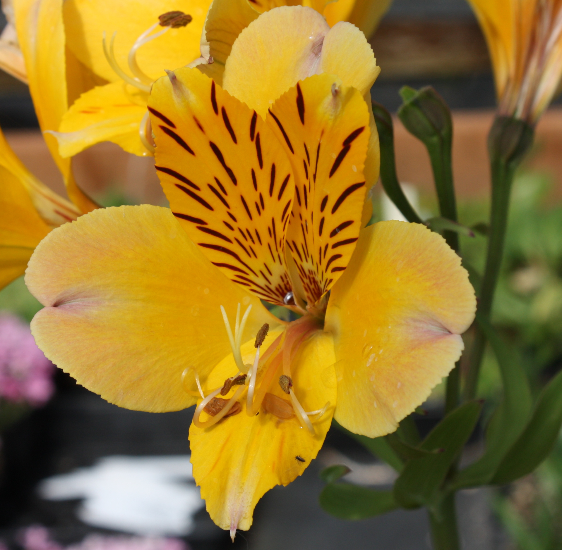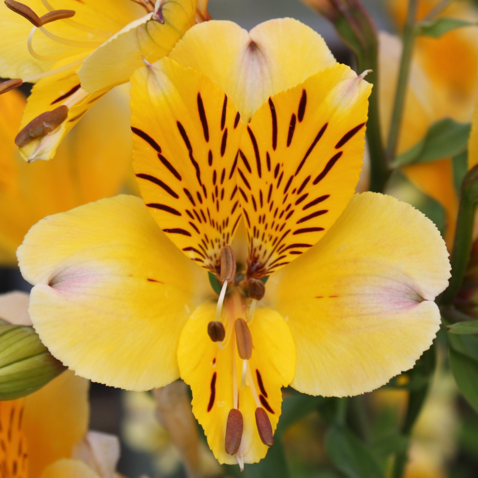 A truly amazing variety that received an award for Garden Merit in England. The flowers are among the largest (3"+), a soft mid-yellow with pink to purple blotches - which are more or less pronounced, depending on conditions - toward the outside of the petals. We put it under USDA zone 7, but feel it shouldn't be less hardy than others.BEFORE ORDERING, PLEASE read very important information about growing and shipping Alstroemerias on top of the Alstroemeria main page.