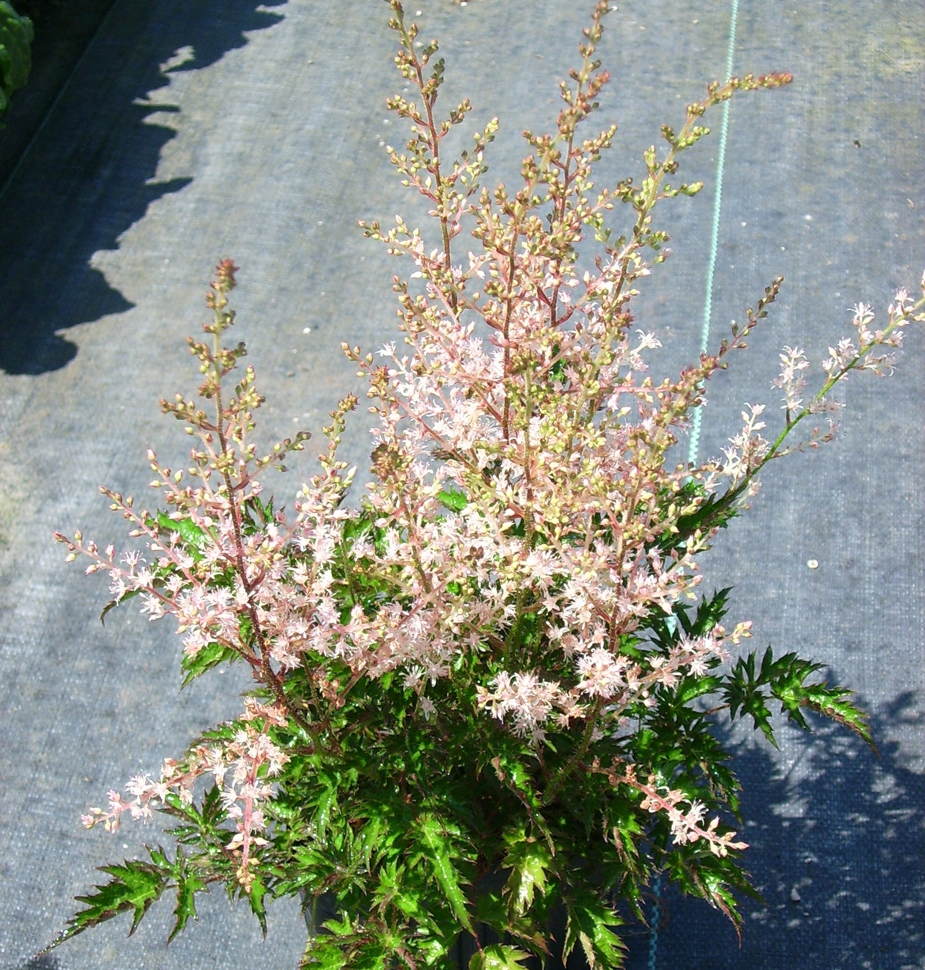 Looks like a dwarf A. simplicifolia and is one of the smallest astilbes. The toothed, dark green foliage reaches about 3". Prefers moist soil, especially in sun.