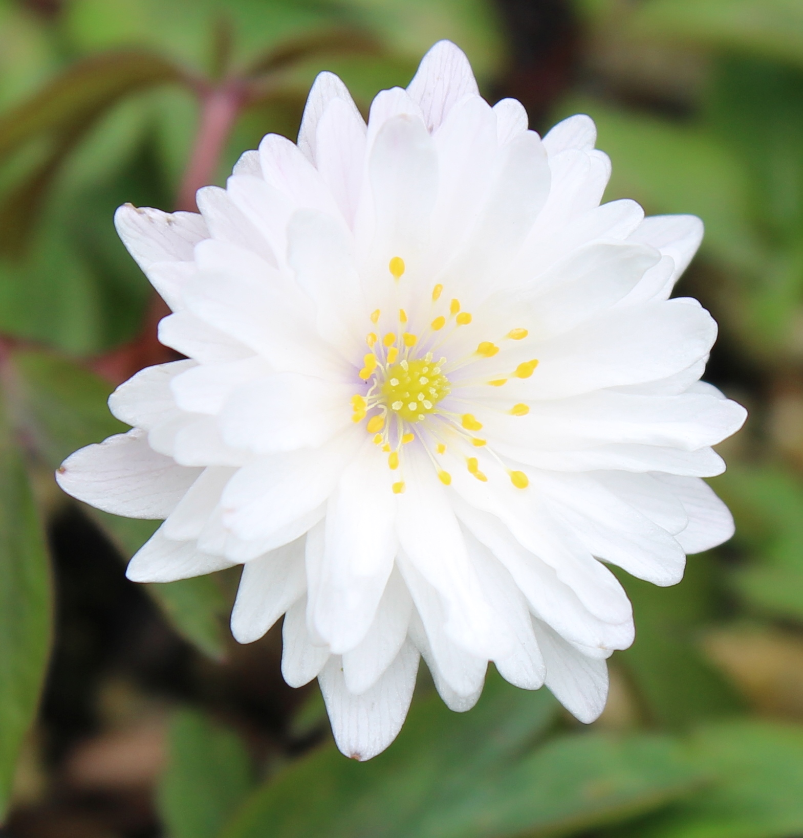 Has relatively large, almost fully double flowers, developing a blue eye with age. Spreading, easy to grow "filler" for the woodland garden or in front of a shady border. Spreading, easy to grow "filler" for the woodland garden or in front of a shady border. Prefers moist, humusy soil but tolerates drier soil in summer as they are then dormant.