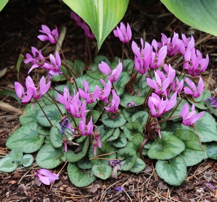 If I would have to name the 10 best perennials, I could never decide on the 10 but I know this plant would be one of them. It's the hardiest of all the Cyclamen, has an extended blooming time and best of all, every single one is strongly fragrant. Bloom color varies between dark pink to deep magenta, leave pattern from slightly marked to almost all silver. Further more they hold on to the foliage through most of the summer, when others are completely dormant. For best performance a moist soil in summer is required. Prefers well drained soil like all Cyclamen.
