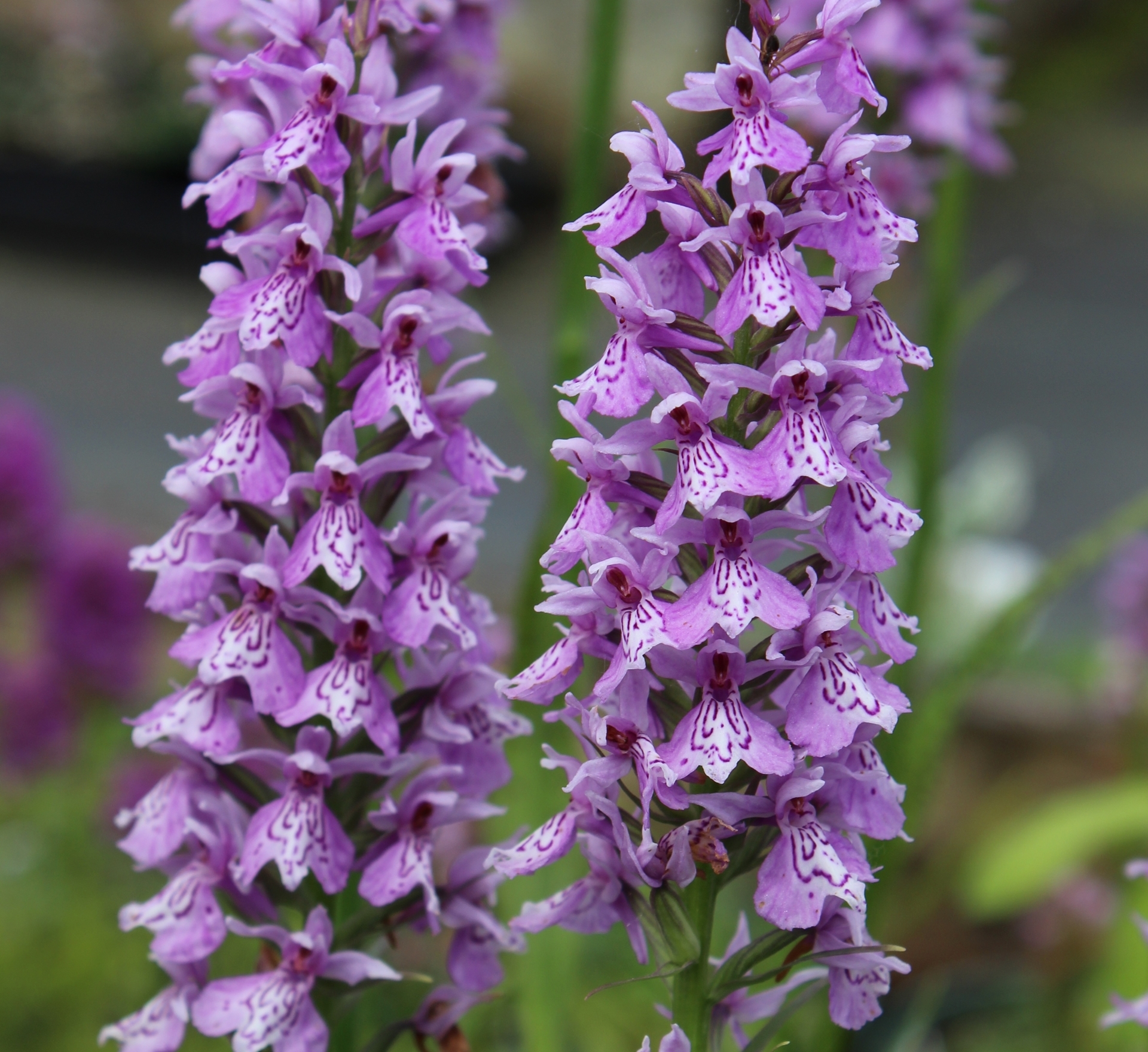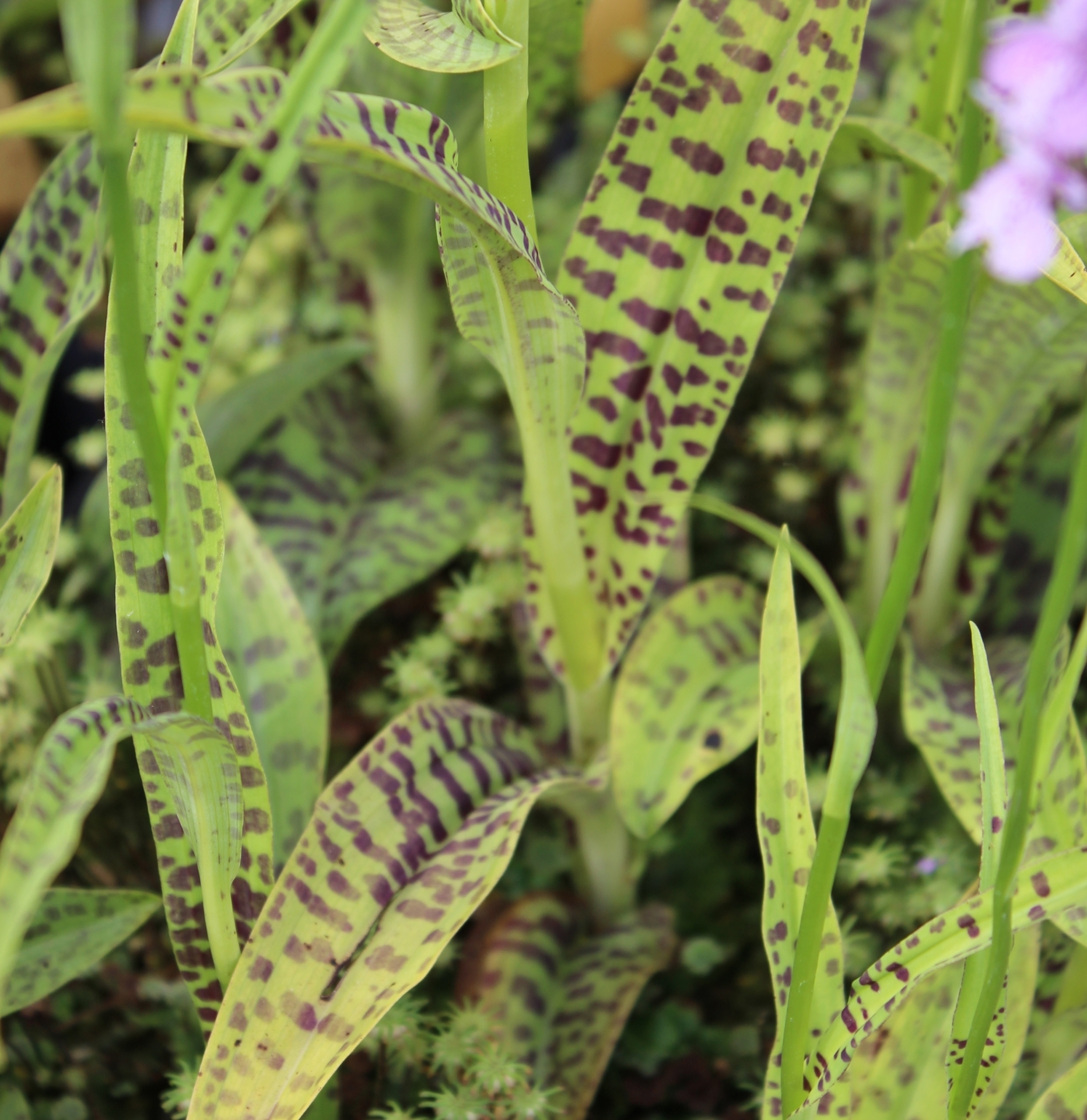 -May be shipped bare root into March; in pots thereafter- A clone chosen for the considerable heavier spotting on the leaves compared to the regular D. fuchsii and for a tall, bold habit. One of the easiest terrestrial orchids, growing easily into sizable clumps, bearing impressive flower spikes and may even seed around. Best in average to moist soils in sun. In warmer climates they'll tolerate half shade as well.