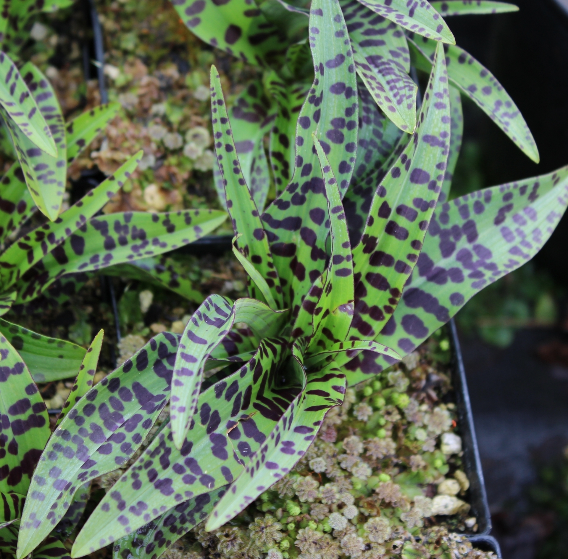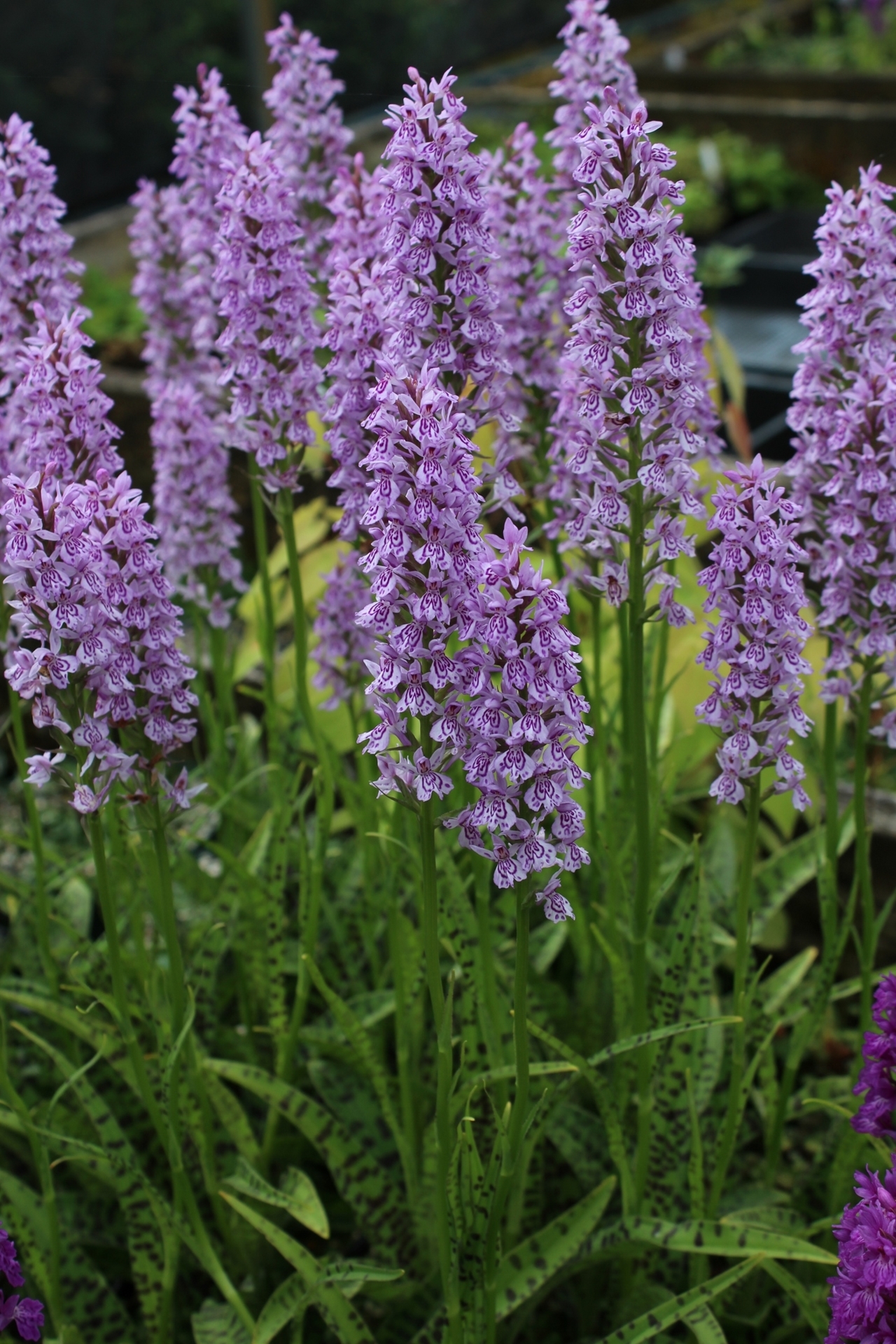 -May be shipped bare root into March; in pots thereafter- Strongly spotted leaves and full flower spikes of pale lavender pink flowers. These are marked with a purple, bee-wing shaped design. As easy as D. fuchsii, this one prefers a more acid soil. Best in average to moist soils in sun. In warmer climates they'll tolerate half shade as well.