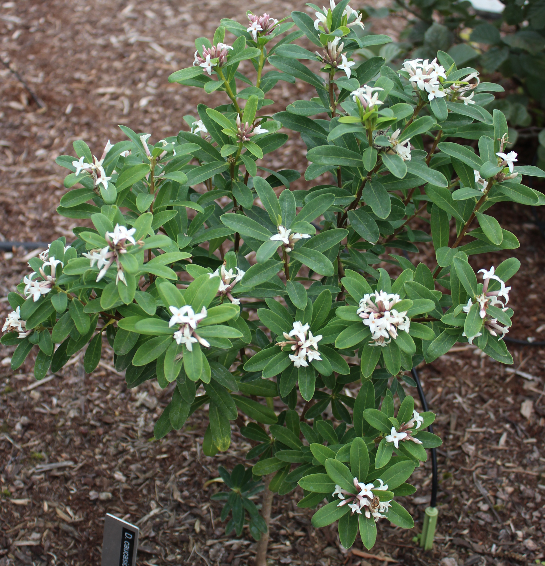A highly fragrant and floriferous species with an upright growth and deciduous leaves. This is one of the parents of D. x burkwoodii and D. x transatlantica, both include exceedingly desirable and equally popular varieties. Their fragrance? You guessed it, is inherited from D. caucasica. Very easy in full sun (not in very hot climates,) to half shade in a well drained soil. Since the plants can get quite tall, pinching and pruning in the first years is recommended for achieving a bushy growth. Later on, the size can be kept down easily by trimming.