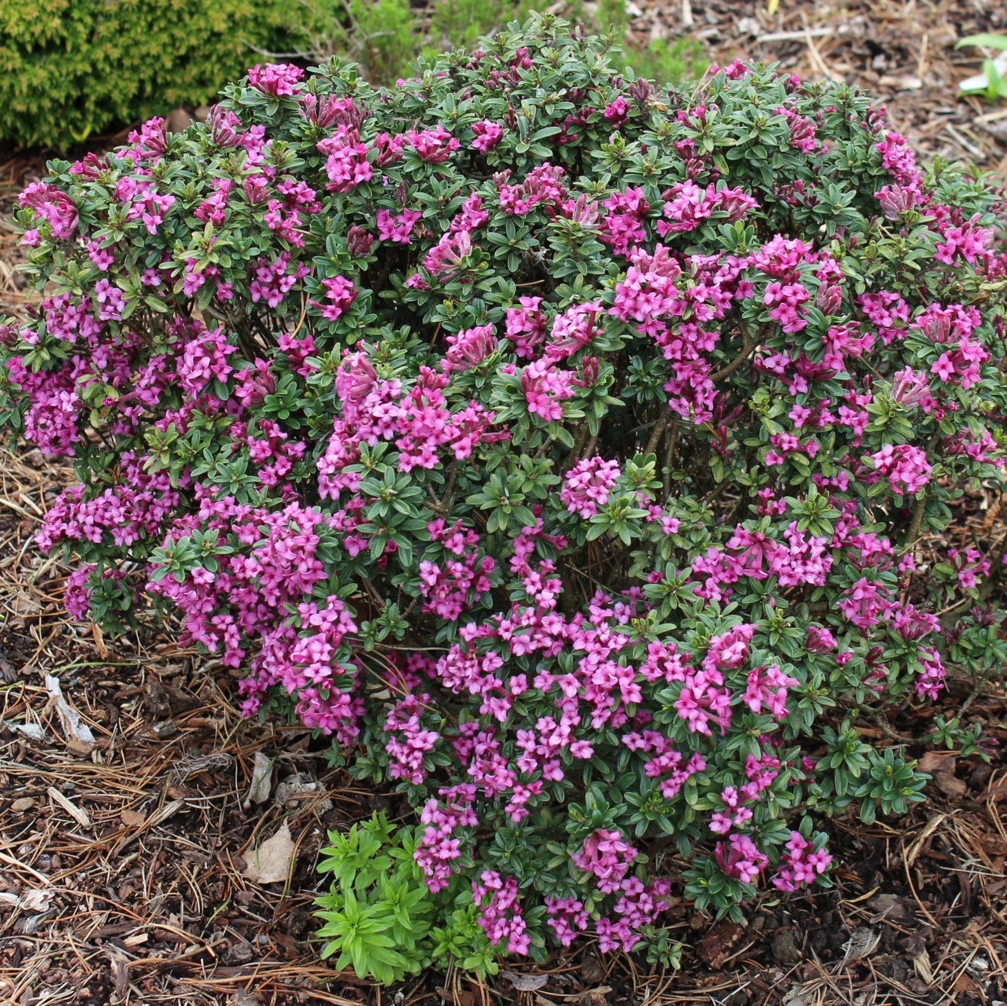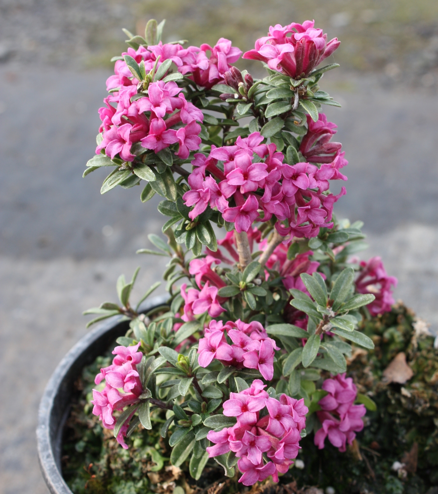 [D. collina x D. petraea] Easy to grow yet very floriferous and fragrant, making it another good candidate for folks who never tried their hands on daphnes yet. (see also D. susannae 'Anton Fahndrich' and 'Tage Lundell') has a more upright habit and the flowers are darker than in most other varieties. Like all daphnes, needs excellent drainage.