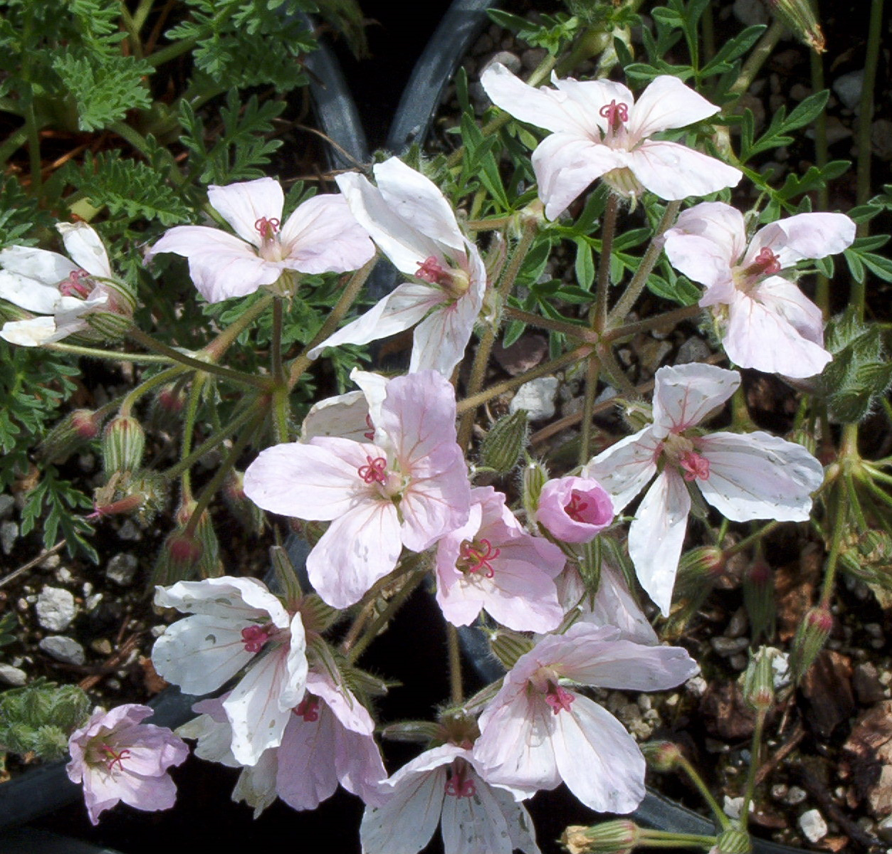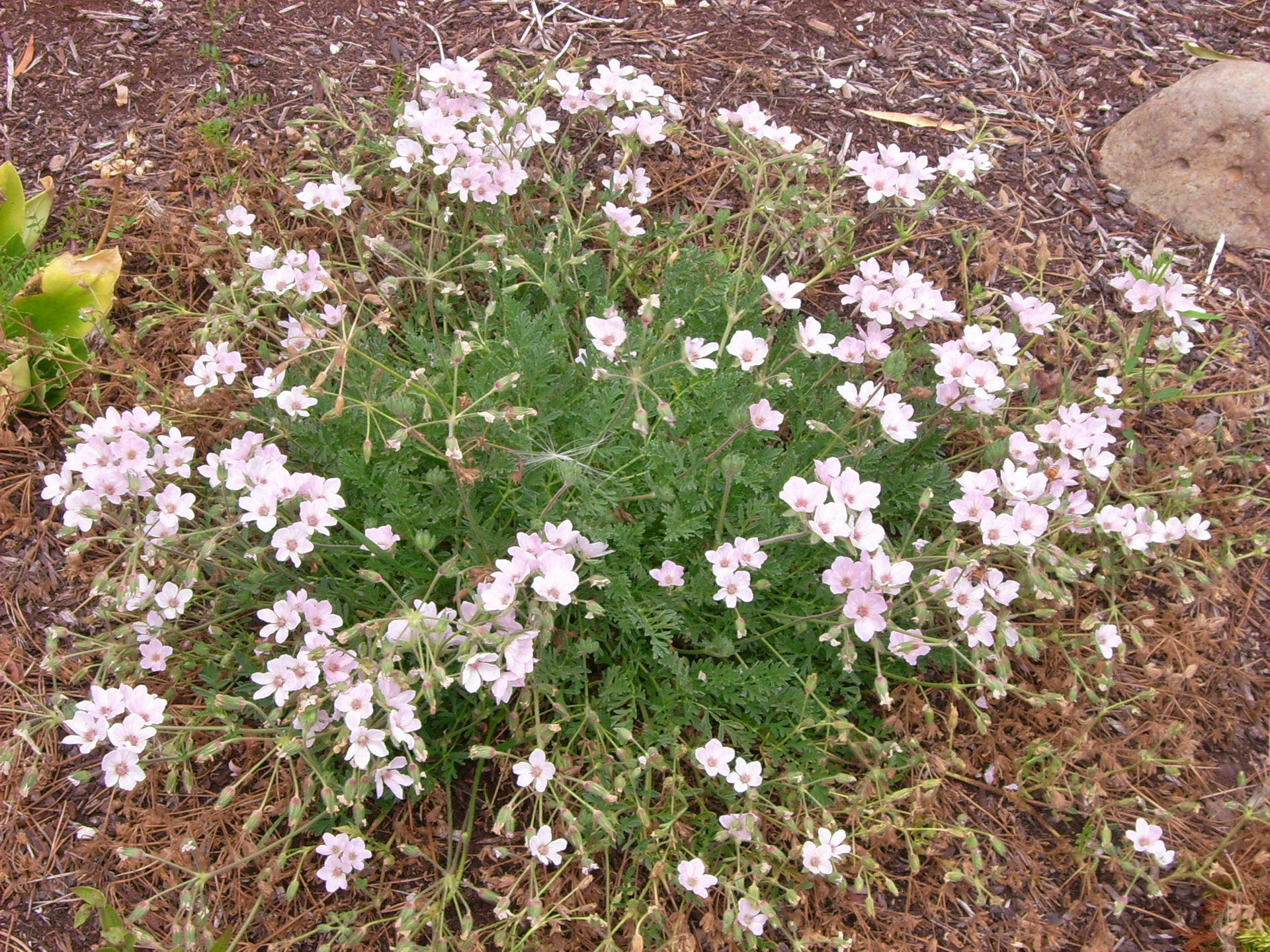 Has decorative grayish-green, feathery leaves and an abundance of 1/2" sized, pale pink flowers throughout the summer. Likes well drained soil and is drought tolerant.