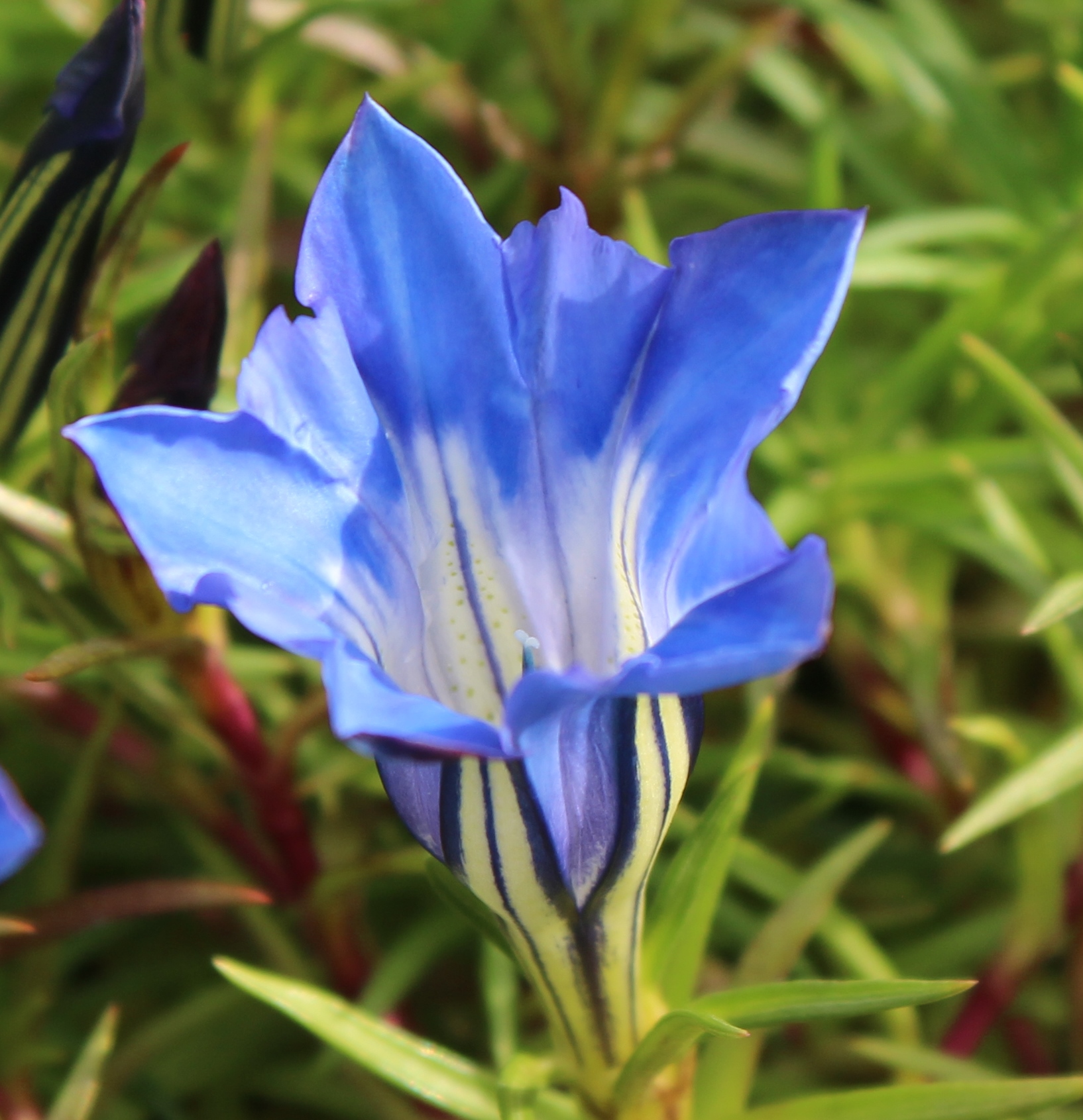 Abundance of deep blue trumpet-flowers, striped on the outside