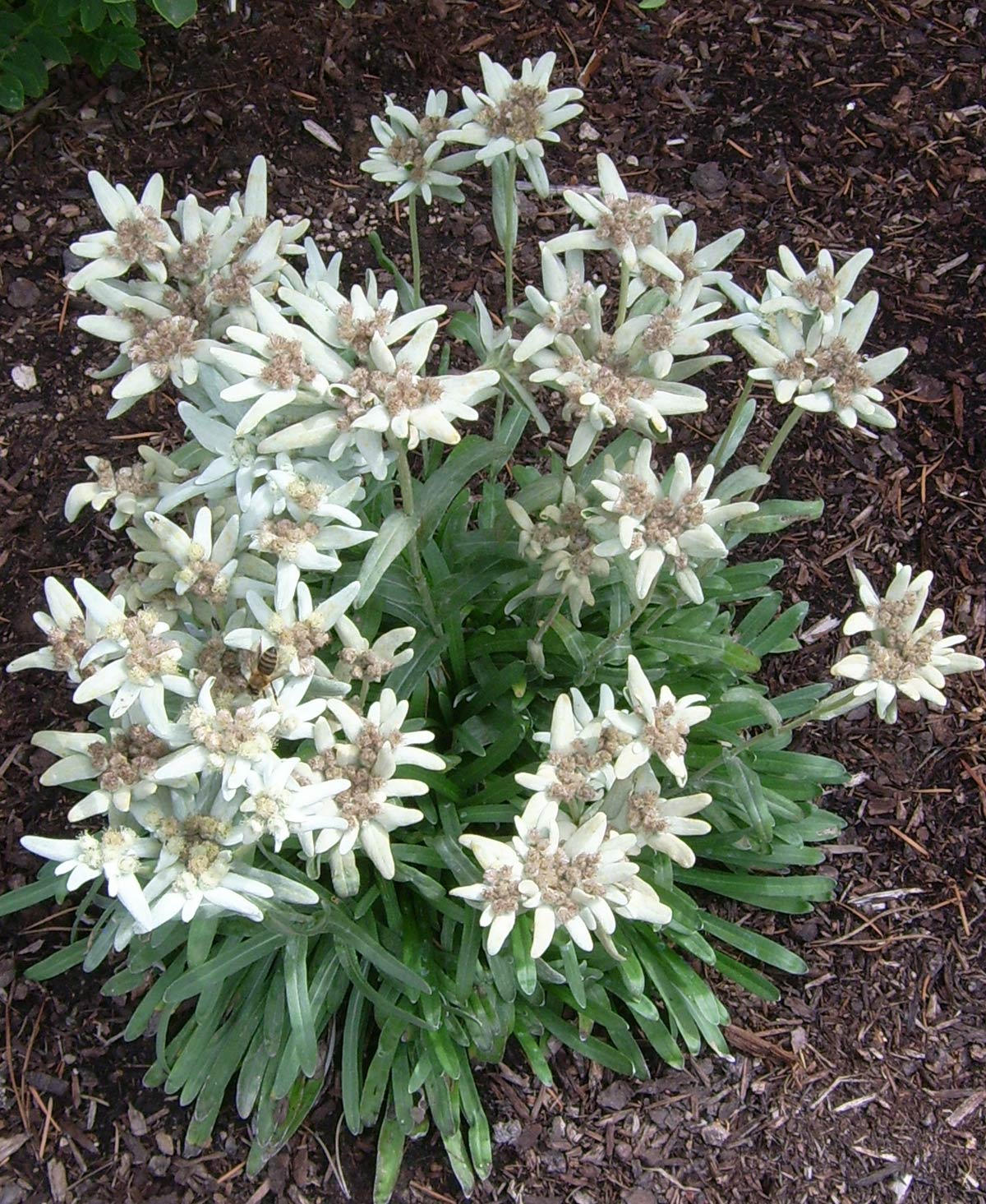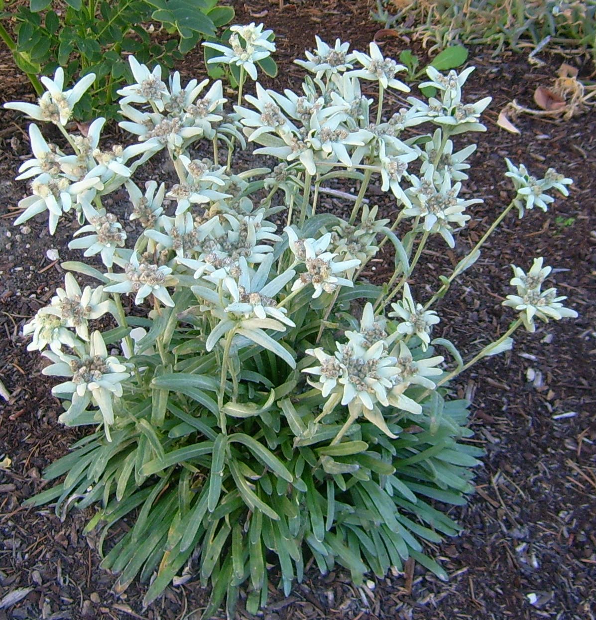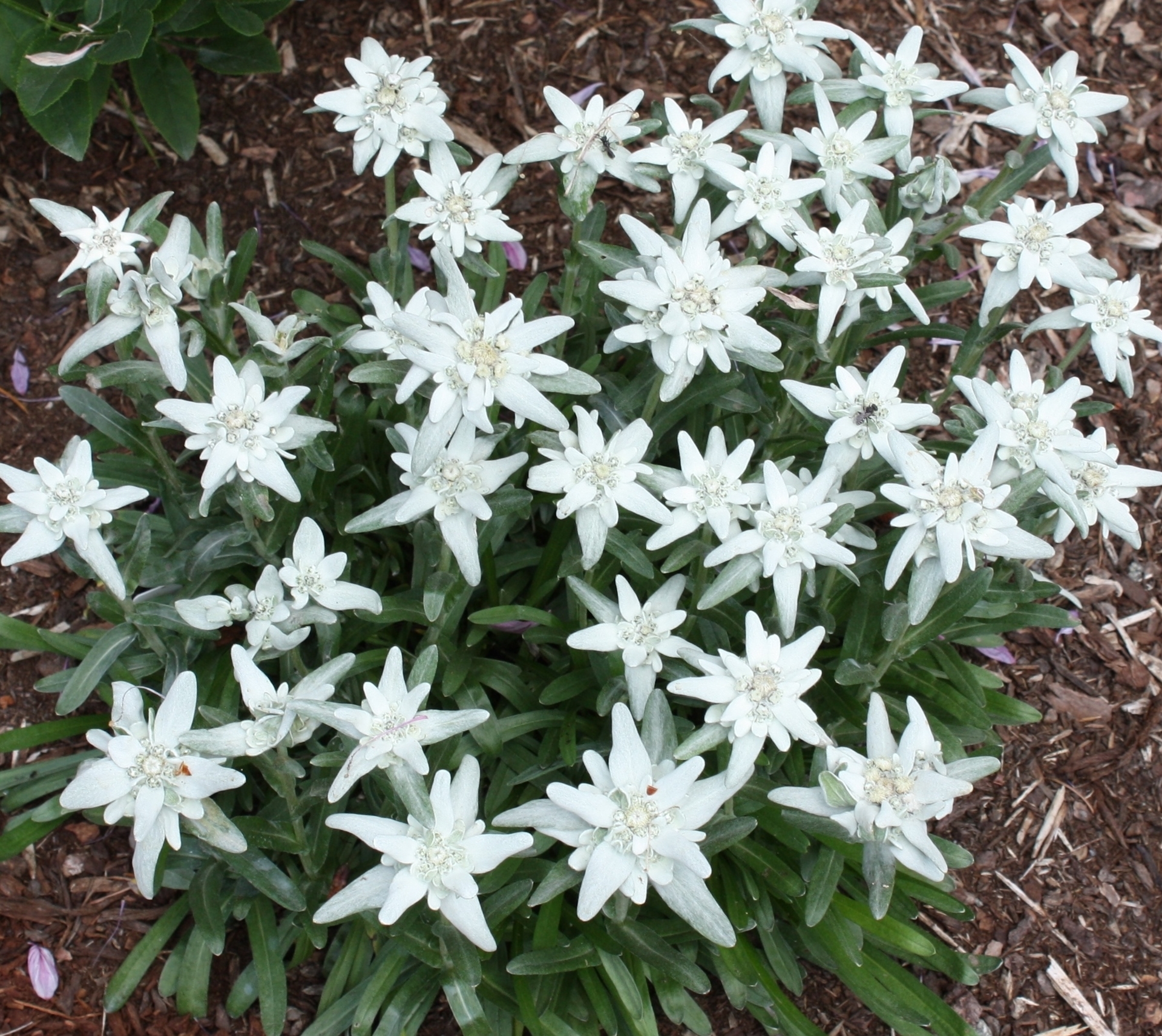 An impressive newer selection of the European Edelweiss, with extended bloom time and better longevity. Whereas the regular Edelweiss vary in appearance, in 'Matterhorn' every plant is the same and has that classic look. It blooms later, starting just about when the regular one is done, but keeps going for months. Not only do the same blooms last a long time but it re-blooms late summer and fall as well. ‘Matterhorn’ can be grown more like other sun perennials and responds well to extra water and a bit more fertilizer than other Edelweiss.