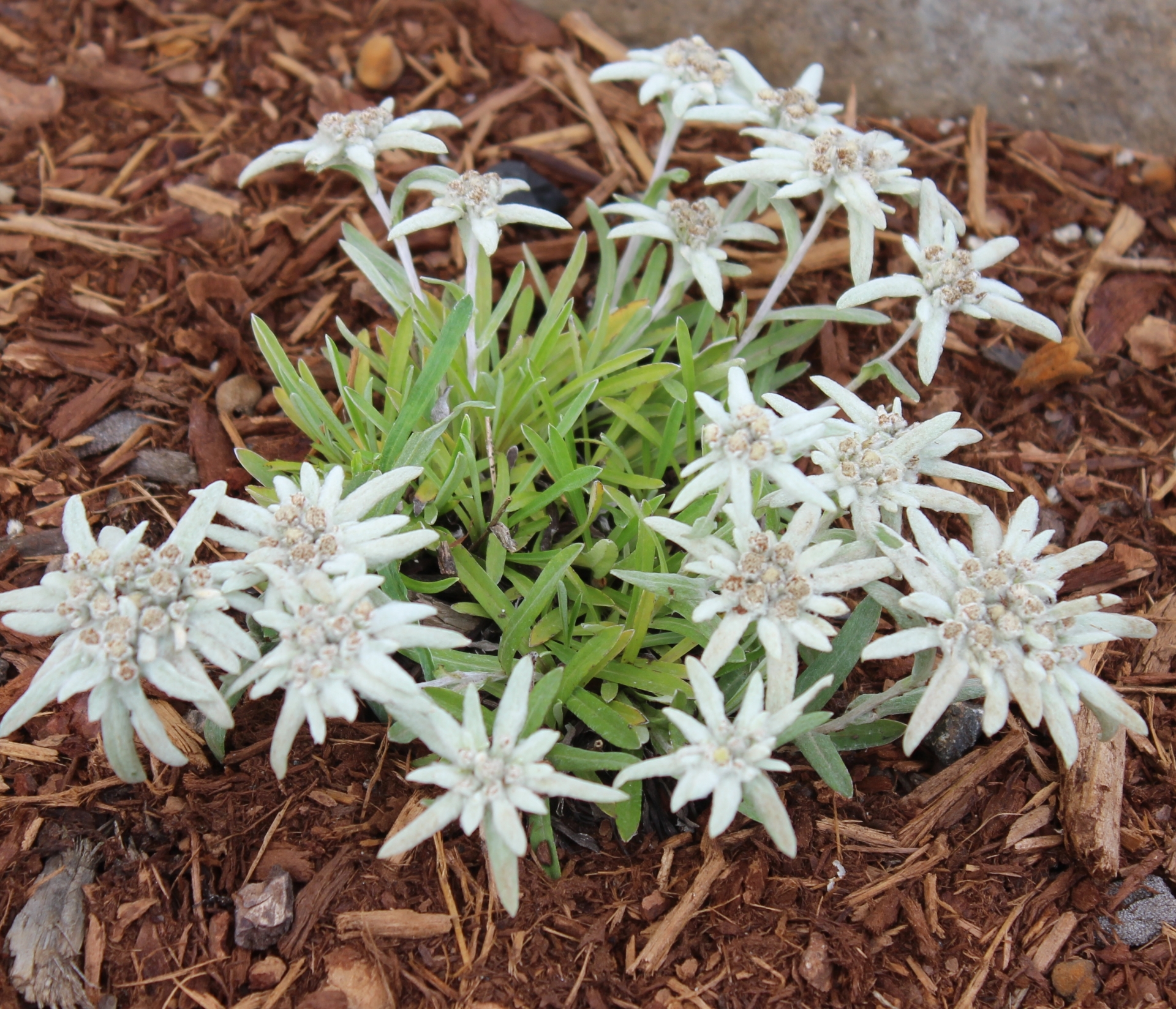 (Formerly sold as L. alpinum EP 1503) Similar to 'Heidi- short/dwarf with "classic" looks, but blooms 2-3 weeks later, is shorter still and the flowers have a softer appearance and feel with slightly recurved bracts (the parts that look like petals). The shorter habit is due to the flower stems being positioned at an a outward angle in a radial design. BEFORE ORDERING, PLEASE read very important information about growing Edelweiss on top of the Edelweiss main page.
