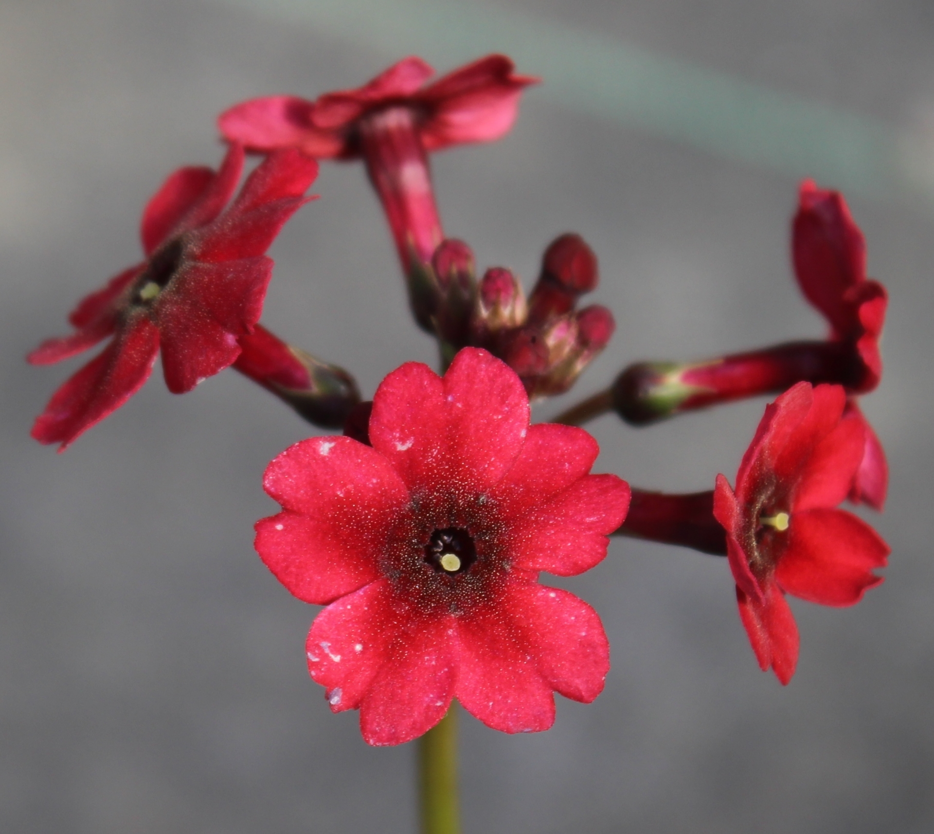 A dark red/crimson selection of the Japanese candelabra primrose, with tiered flowers stalks up to 2 feet tall in late spring. These like a moist to wet soil and very well suited for the edge of a pond or creek. They'll take full sun in wet soil but need some afternoon shade in average soils.