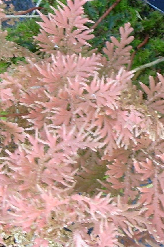 Looks much like a fern and is closely related to them. The fronds are bright green spring to summer, turning darker in fall. In frost-free regions, it will stay that way thru the winter, in colder regions the fronds will turn orangey-pink to bronze. Evergreen/semi-evergreen in milder zones (zones 8-10); winterdoermant in colder ones (6,7). Please note they can emerge VERY late in spring, as late a June. Slow spreading and likes an average to moist, well draining soil. Will tolerate dryer conditions once established.