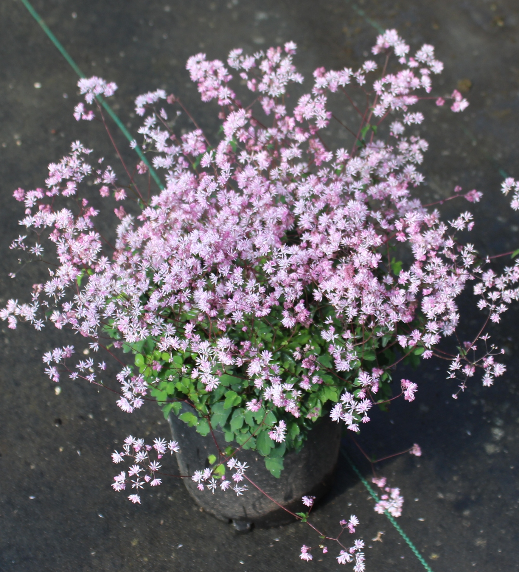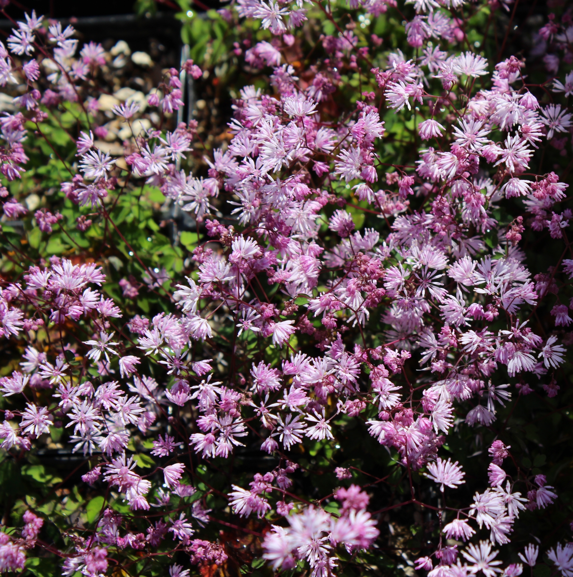 Covered with clusters of ½" mauve-pink puff ball flowers, all stamens, above mats of dark green foliage. Great for rock gardens, troughs and the front of a border.