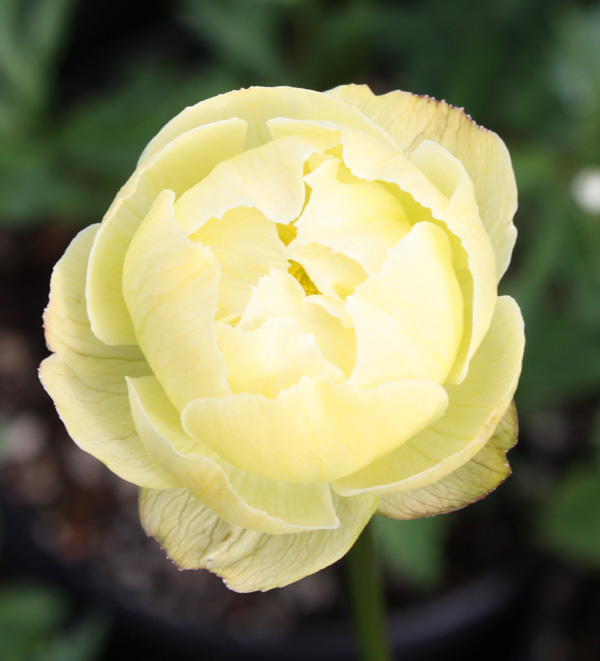 The rare and gorgeous pale colored version of this European native, which can be found in the Swiss Alps, where they are called "butter balls" ("Ankeballe" in Swiss-German). Numerous flowers open from bronze-tinged buds to aprox. 1-1/2", pale yellow at first, maturing to alabaster. Despite that they are closely related to buttercups, they are strictly clumping and we haven't encountered a single seedling in 10 years. They need at least average summer moisture and will grow in boggy areas as well.