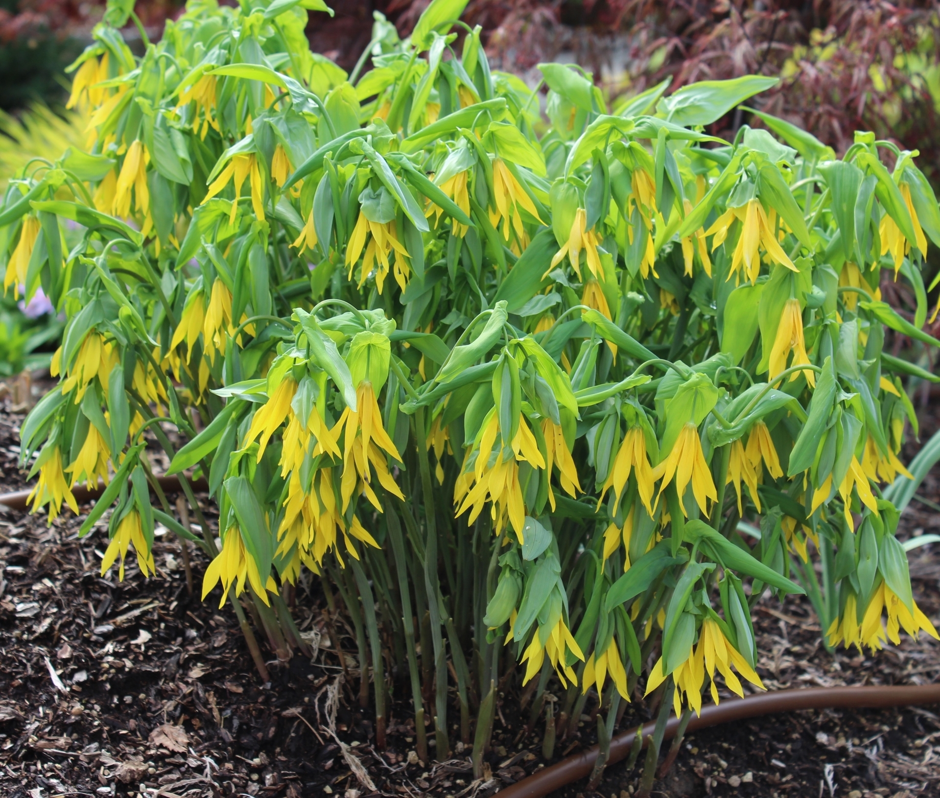 Other than the flowers are larger than on U. sessilifolia, they are deeply colored and very showy. Easy to grow in a woodland setting. Clumping.